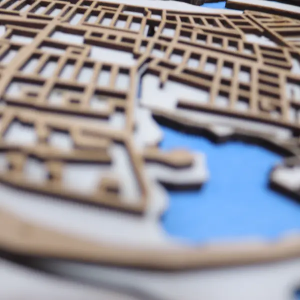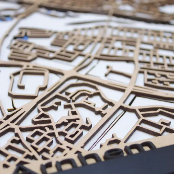 Deze unieke houten stadskaart brengt elke stad tot leven in een luxe, minimalistische stijl. Dankzij geavanceerde lasergraveertechniek worden alle straten, wijken, waterpartijen en contouren haarscherp uitgesneden. Het resultaat is een modern kunstwerk met een prachtig 3D-effect dat direct de aandacht trekt.